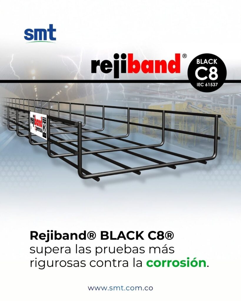 En SMT, sabemos que en proyectos eléctricos y de telecomunicaciones la durabilidad, resistencia y fiabilidad de las soluciones son fundamentales. Por eso te presentamos BLACK C8, un sistema de protección de alta resistencia a la corrosión aplicado en las bandejas portacables Rejiband® de Pemsa, diseñado para soportar los ambientes más exigentes y ofrecer un rendimiento superior en instalaciones críticas.