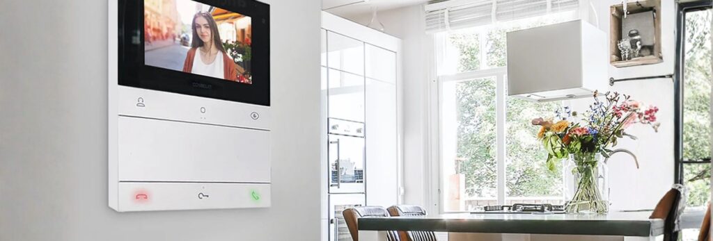 Esto significa que un usuario puede ver, hablar y abrir la puerta desde un monitor interior o incluso desde su smartphone.