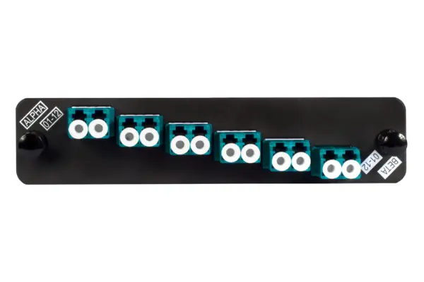 Paquete de adaptadores LazrSPEED ® , negro, tipo 1000, con 6 adaptadores LC dúplex multimodo, aguamarina, sin obturador.