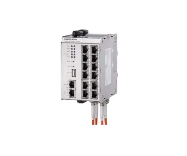 Modular Industrial Gigabit Ethernet Basic-Switch, 8x 10/100/1000T PoE+ (PSE), 1x 10/100/1000T PoE+ (PD), 4x Dual Media Ports: 100/1000X SFP-Slot or 10/100/1000T, integrated CPU, Serial Port, USB Port, SD Memory Card Slot, I/O: 2x in, 2x out, 2x power input 24..57 VDC