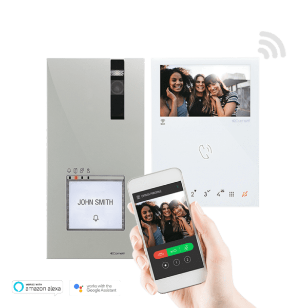 Kit unifamiliar para sistema Simplebus 2. Es posible ampliar el kit hasta 4 placas de calle de exterior y hasta 4 usuario/viviendas con 4 monitores de videoportero por usuario/vivienda. Adecuado para uso residencial, comercial u oficinas. El kit se suministra ya programado y listo para usarse. Asociado a la aplicación Comelit, que se puede descargar gratuitamente en App Store o Google Play, o al asistente de voz Alexa, permite responder a las llamadas directamente desde el smartphone/tablet/Alexa, tanto en modo local como remoto.