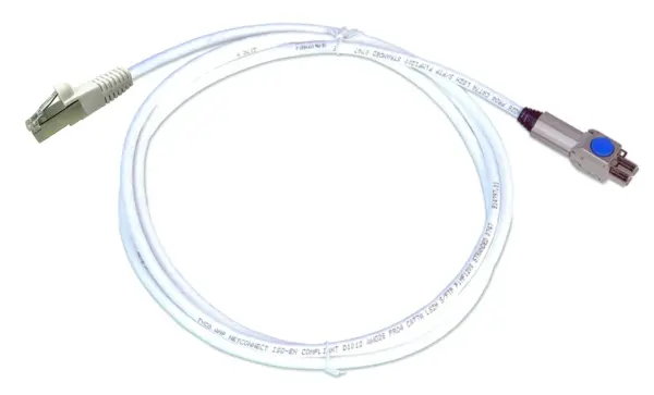 Cable de conexión de cobre, conector RJ45 a 4P AMP-TWIST, cat 6A, S/FTP, trenzado, LSZH, blanco, 1 m.