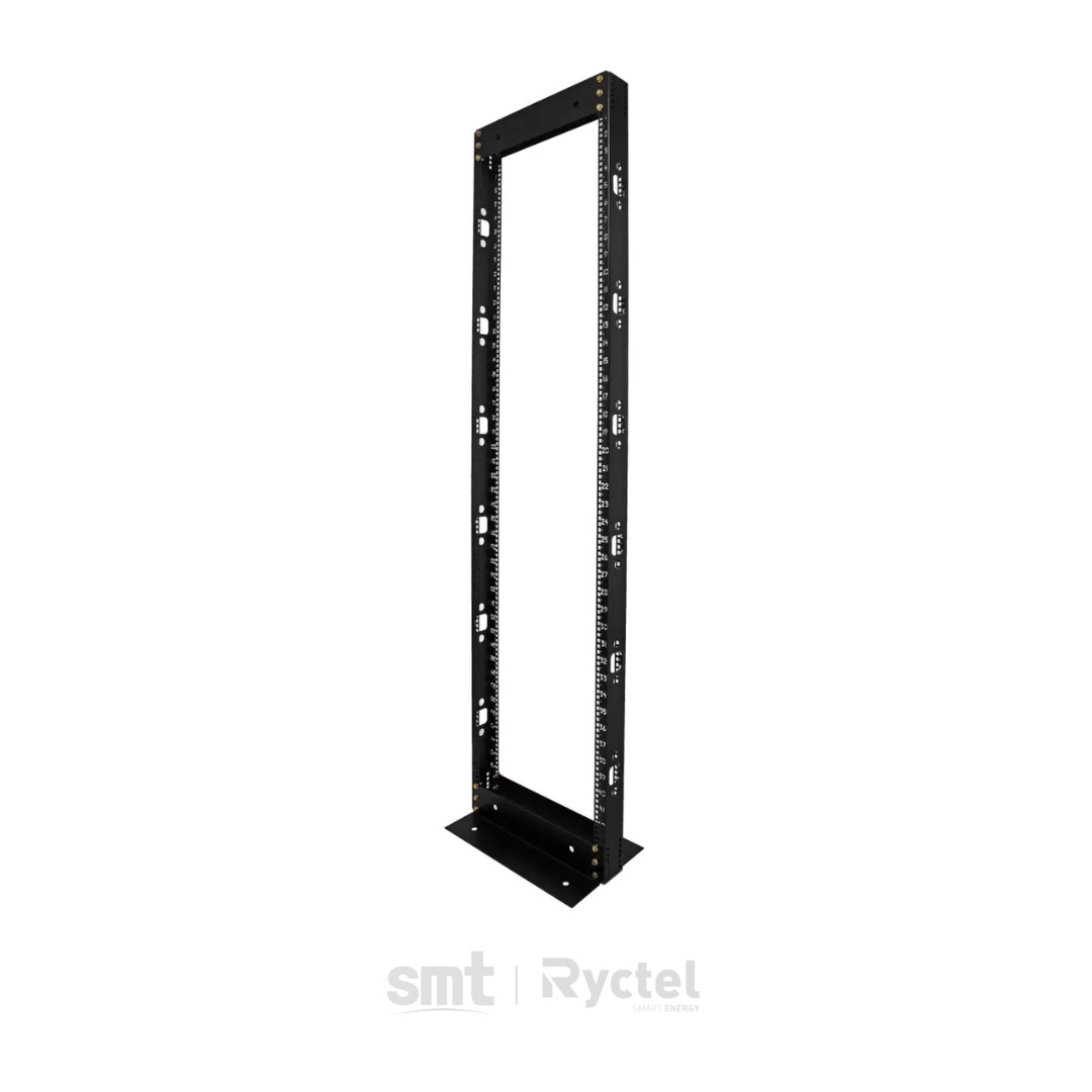 Los racks abiertos RYCTEL son ideales para espacios limitados o aplicaciones económicas. Poseen rieles verticales con orificios cuadrados, tuercas enjauladas de 6 mm incluidas para alojar equipos de 19”, de acuerdo con el estándar EIA-310-D. Pueden soportar hasta 600 kg de peso en equipos.