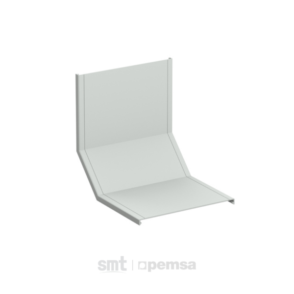Tapa para cambio de nivel cóncavo aislante de 90º para conducción para bandejas y canales protectoras Metatray®. Fabricada en material termoplástico aislante en base de PVC. Color gris RAL 7035.