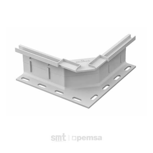 Pieza de conexión para la creación de derivaciones en T o cruces de bandejas aislantes Metatray® para la conducción de cables electricos y de telecomunicaciones. Fabricado en material termoplástico aislante en base de PVC. Color gris RAL 7035.