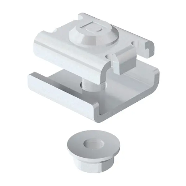 Pieza de acero para la unión de tramos de bandejas Rejiband® compuesto por un tornillo encastrado, una placa de unión y una tuerca. Gracias a su construcción, simplifica notablemente el montaje de unión entre tramos y asegura la mayor resistencia mecánica de la unión entre bandejas, optimizando los posibles valores de carga máxima. Se distribuye en diversos Sistemas de protección.