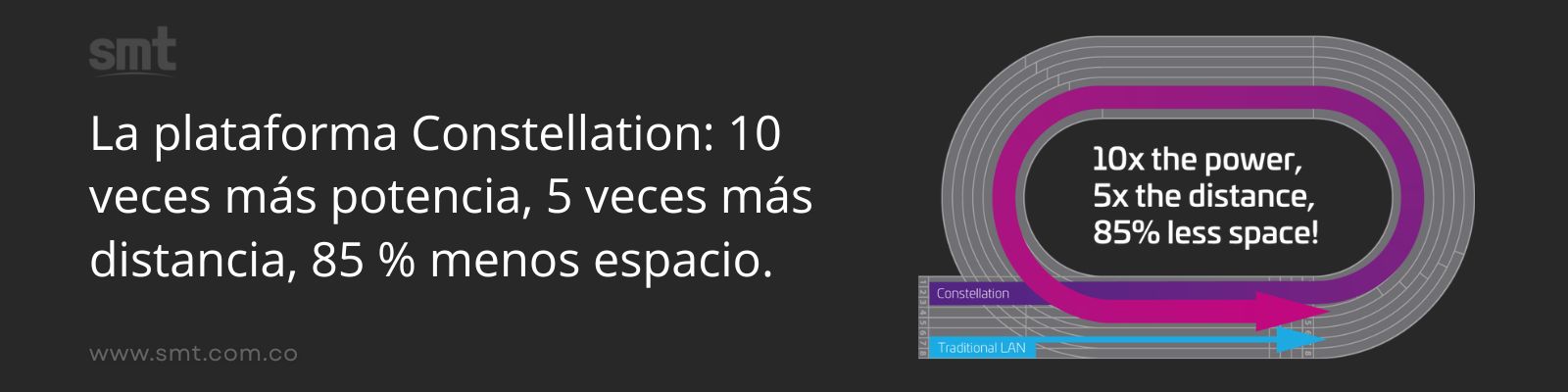Constellation permite extender la red a mayores distancias en comparación con infraestructuras LAN tradicionales, lo que resulta especialmente útil en edificios grandes, campus o instalaciones industriales.